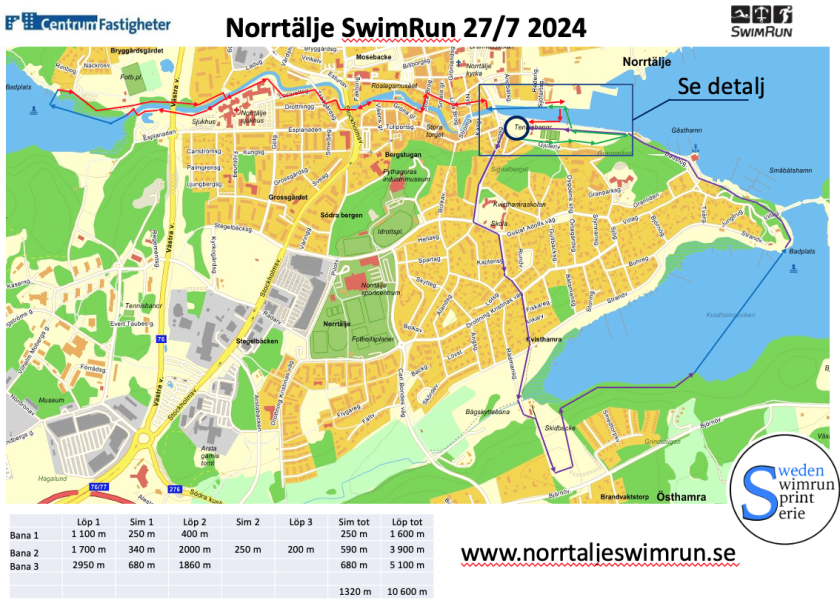 Bana 2 (röd) är stadsvarvet och går igenom centrala Norrtälje. Varvet börjar efter simningen i hamnbassängen och följer Norrtäljeån tillll Lommaren för den andra simsträckan. Denna simsträcka är 400m och avslutas vid Lommarbadet. Sedan går banan tillbaka mot Norrtälje hamn för en kort simning i hamnbassängen och sedan mot Socitetsparken.